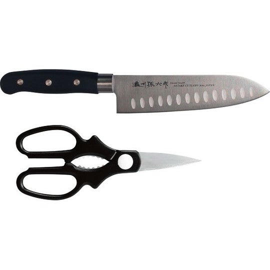 現品(三徳包丁)全長約29cm・刃渡り約17cm、(キッチンバサミ)全長約20.5cm・刃渡り約6cm