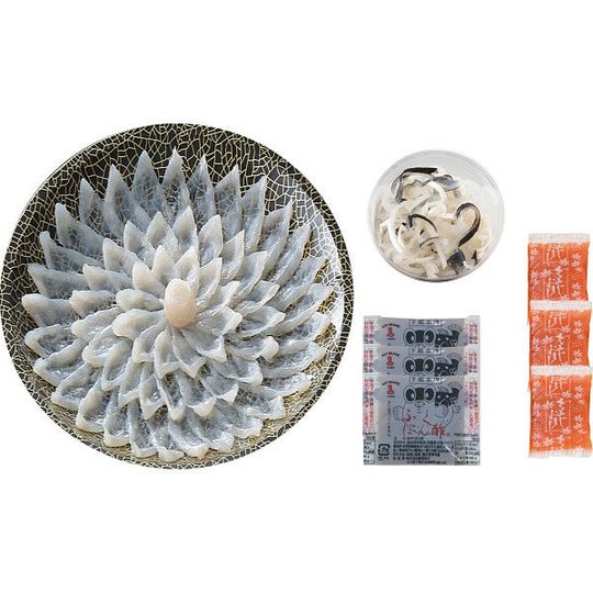 とらふぐ刺身80g、とらふぐ皮30g、ふくポン酢10g×3、もみじおろし10g×3(とらふぐ:熊本県産・長崎県産養殖)